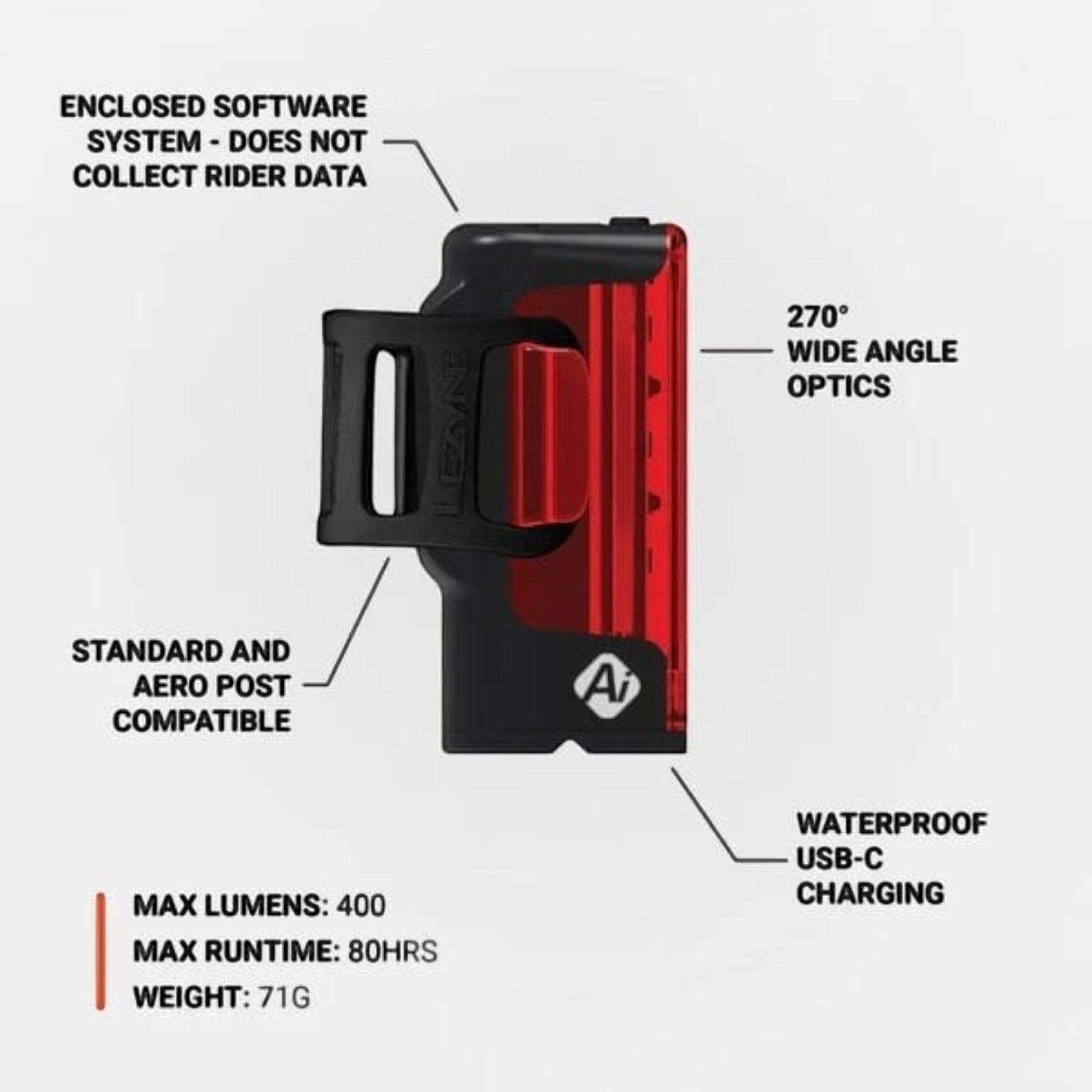 | Ai Alert Artificial Intelligence | Frenado Inteligente: Cambia a 150 lúmenes al frenar para alertar a conductores de inmediato. |