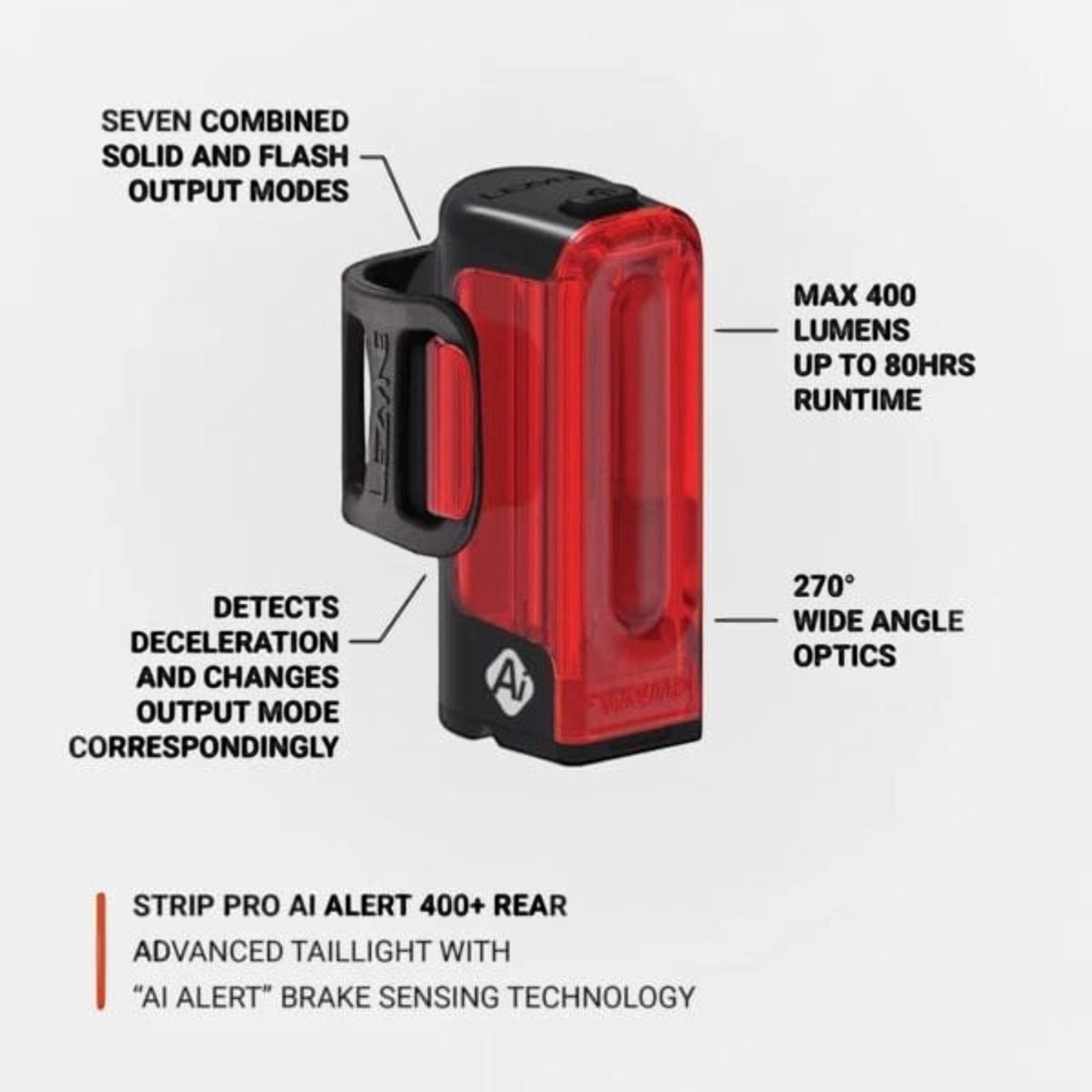 Lezyne Strip Pro Ai Alert 400+: La próxima generación en seguridad ciclista inteligente. ¡Hazte visible!